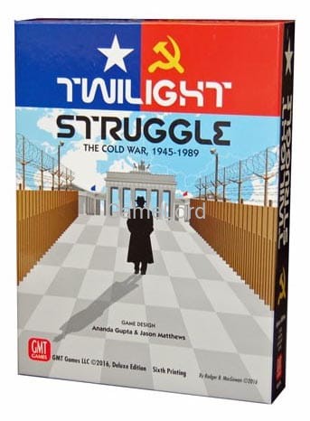 Twilight Struggle is a two-player game simulating the 45 year dance of intrigue, prestige, and occasional flares of warfare between the USSR and the USA. The entire world is the stage on which these two titans fight. The game begins amidst the ruins of Europe as the two new superpowers scramble over the wreckage of WWII, and ends in 1989, when only the United States remained standing.