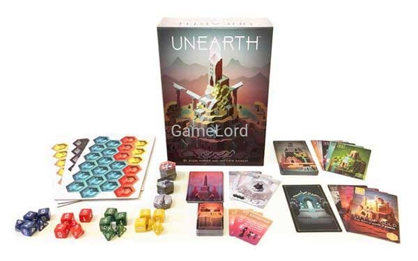 Long ago, your ancestors built great cities across the world. Now your tribe of Delvers must explore forests, deserts, islands, caverns, and mountains to find these lost cities. Claim the ruins, build places of power, and restore the glory of a bygone age. Unearth is a dice placement game for 2-4 players from the makers of the hit game, Boss Monster. Unearth is easy to learn, but full of surprises that will engage gamers at all levels.