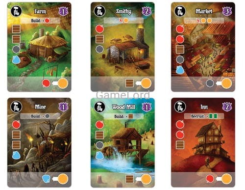 Villages of Valeria is a village-building card game in which players establish resources, construct buildings, and attract adventurers to become the next capital city of Valeria. Take on the role of a Duke in the vast and beautiful kingdom of Valeria and, on your turn, lead the table by selecting an Action - Harvest, Develop, Build, Recruit, or Tax - for everyone to perform while you get a slight advantage for being the Active Player.