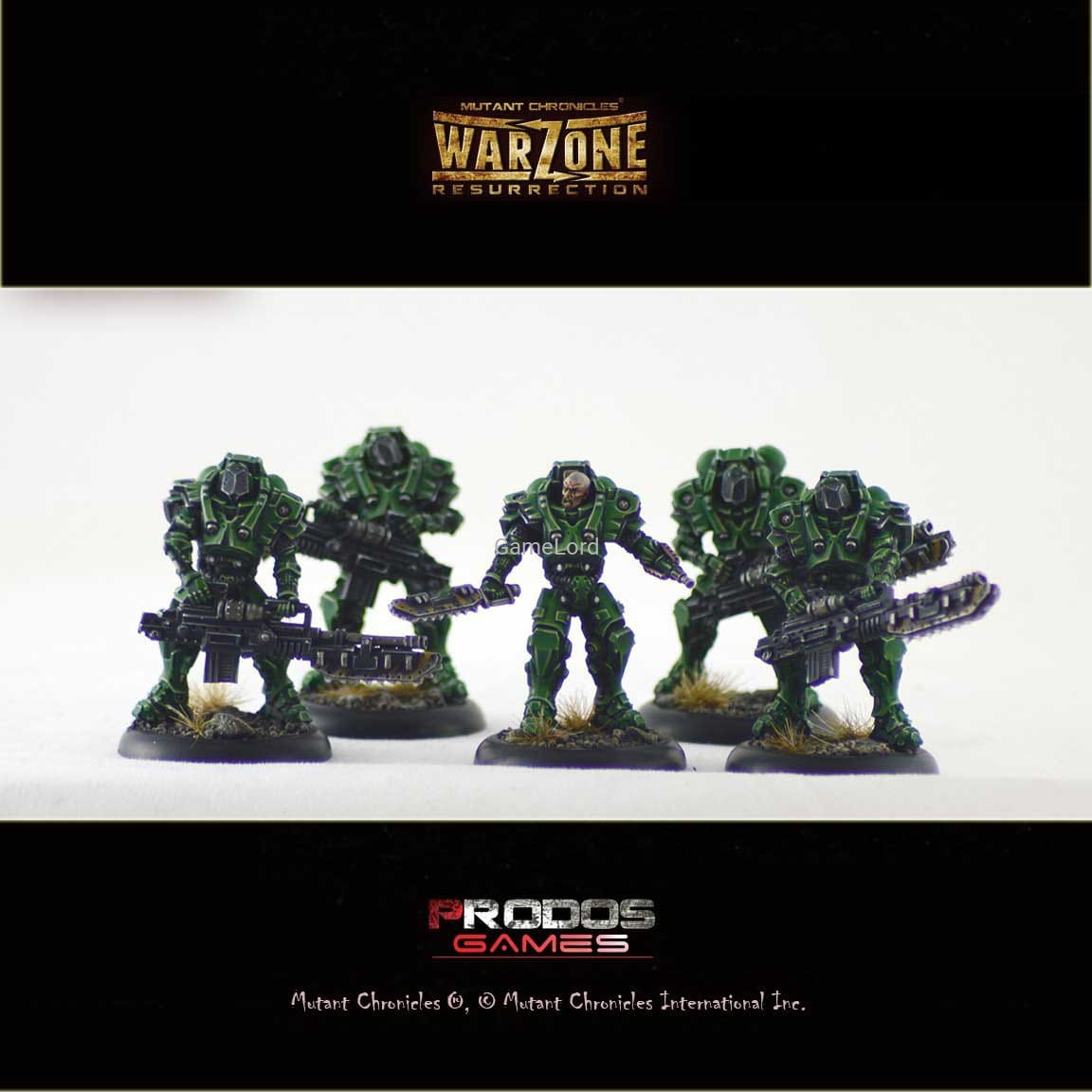 Modele w systemie bitewnym Mutant Chronicles - Warzone Resurrection są wykonane z żywicy w skali 32mm. Każdy pojedynczy model lub ich zestaw jest dostarczany z odpowiednimi kartami strategii (mogącymi reprezentować zasoby, dodatkowy sprzęt czy też lokalne lub globalne efekty wpływające na pole walki) oraz okrągłymi podstawkami z plastiku, na których modele mają być osadzone.