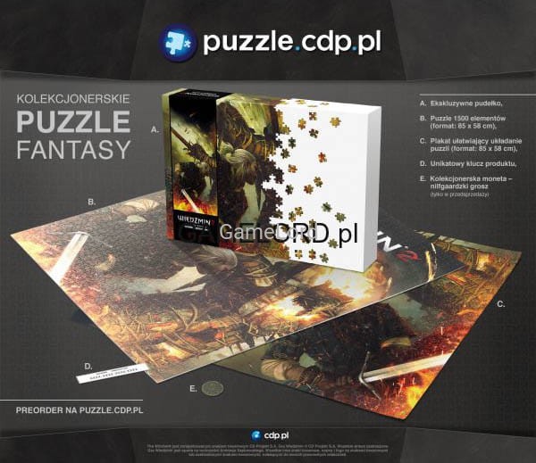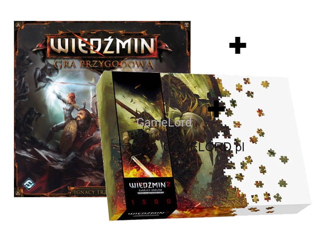 Zestaw zawiera grę Wiedźmin: Planszowa Gra Przygodowa plus Puzzle Wiedźmin: Geralt i Draug.
