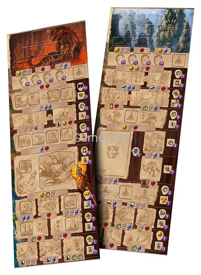 -2 nowe świątynie do eksploracji: Świątynia Małpy oraz Świątynia Jaszczura. Możemy ich używać zarówno z przywódcami ekspedycji, jak i bez nich, alternatywnie do terenów z wersji podstawowej. Aby zagrać z użyciem jednego z nowych torów badań, należy go po prostu umieścić na torze badań z dowolnej strony standardowej planszy.