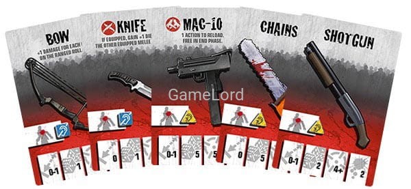• 155 cards: 86 Equipment cards, 48 zombie cards, 9 team cards, 12 wounded cards.